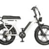 De krachtige Bafang 250W motor en de 7-speed Shimano derailleur zorgen voor soepele en comfortabele ritten, terwijl de geveerde voorvork en de brede Kenda 20×4.0 banden zorgen voor grip en comfort op elk terrein.