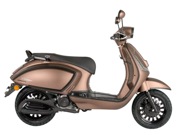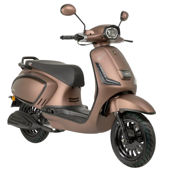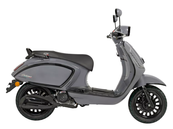Verkrijgbaar in de kleuren Nardo Grey en Mat Black met glimmende zwarte sierlijsten, en Bounty Brown met matzwarte sierlijsten. De GTS Palermo is beschikbaar als 25 km/u en 45 km/u variant.