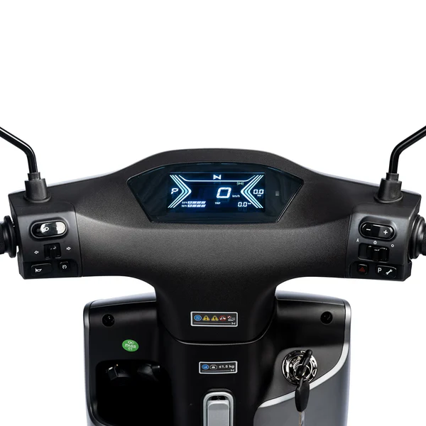 Ontdek de perfecte mix van kracht, comfort en design met de IVA NCS elektrische bromscooter. Met zijn fluisterstille 2000W onderhoudsvrije motor biedt deze scooter een soepele rijervaring en snelle acceleratie zonder uitstoot. Dankzij de uitneembare accu en ruimte voor een tweede batterij rijd je tot wel 120 km op één lading.